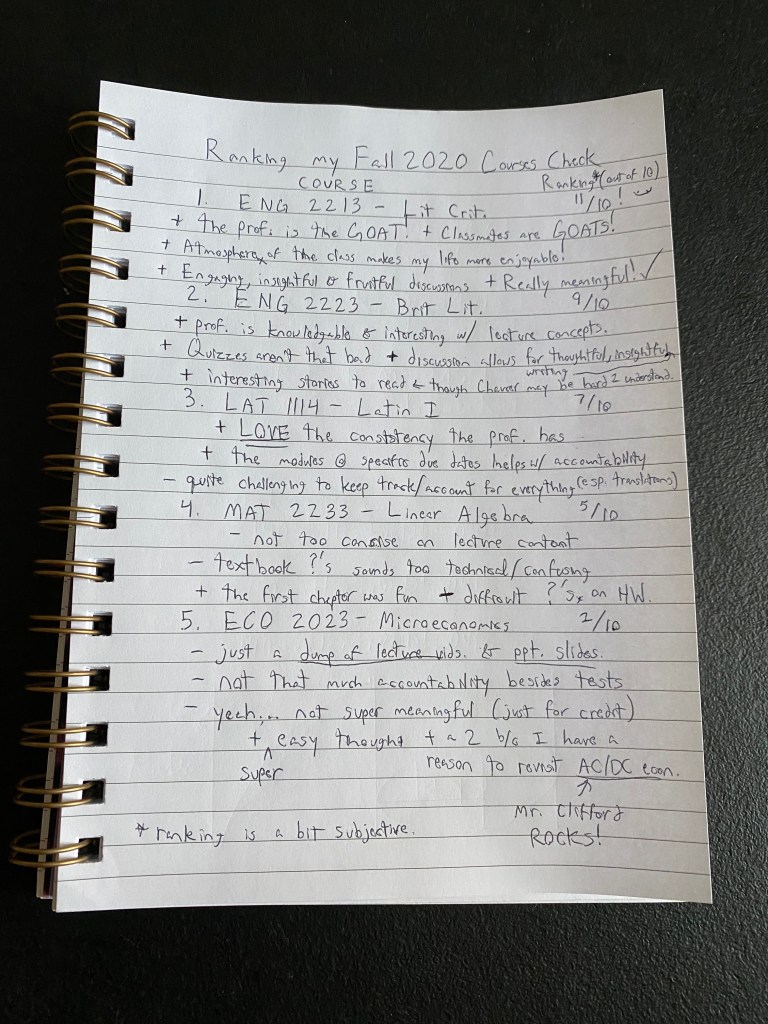 Also, if you want to see how I ranked my classes overall, especially how I thought about this during the detox, you may look into the picture below: